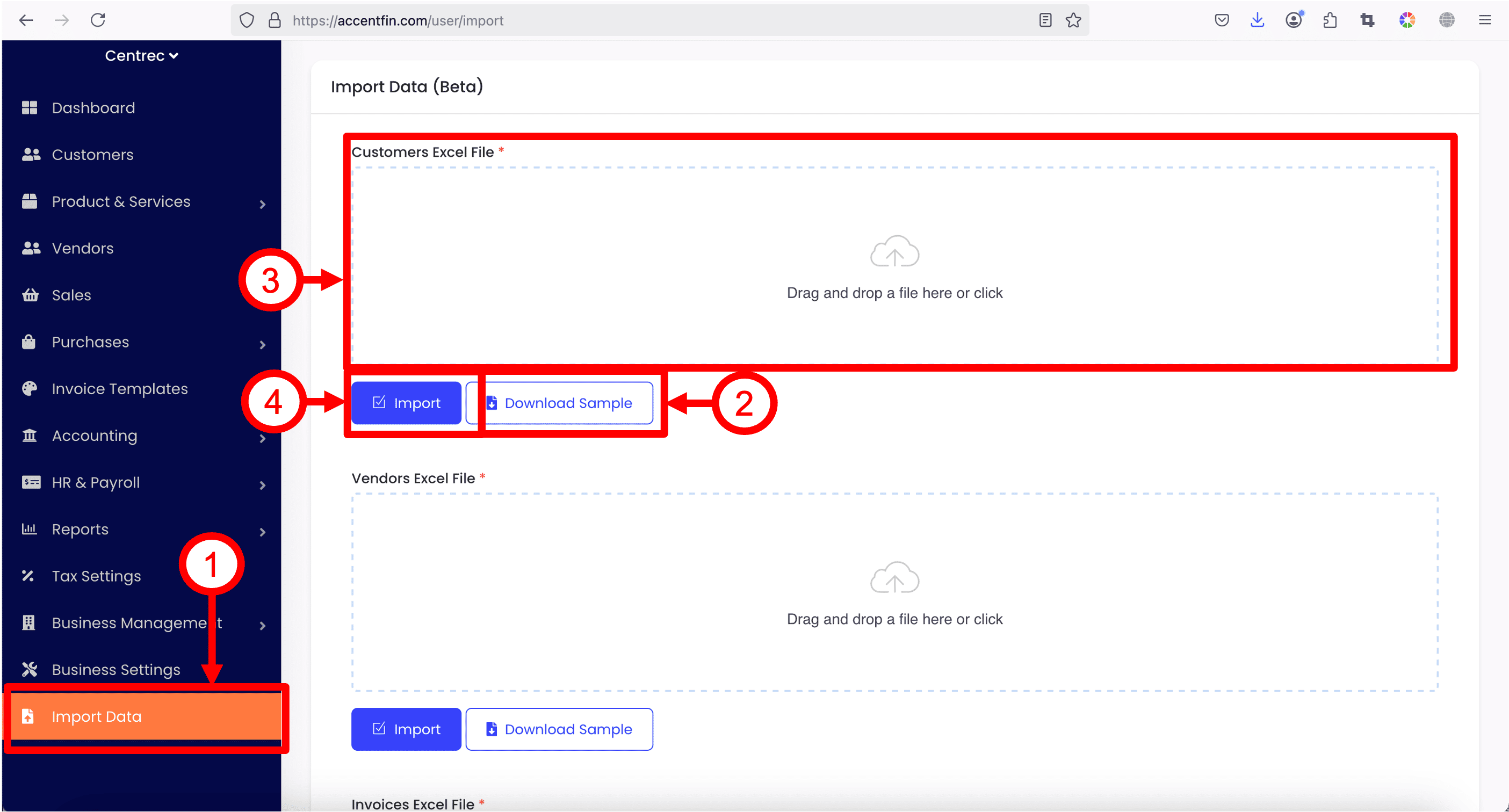 2. Download the sample Excel file by clicking on the Download Sample button. The sample Excel file contains sample data for you to modify according to your needs.