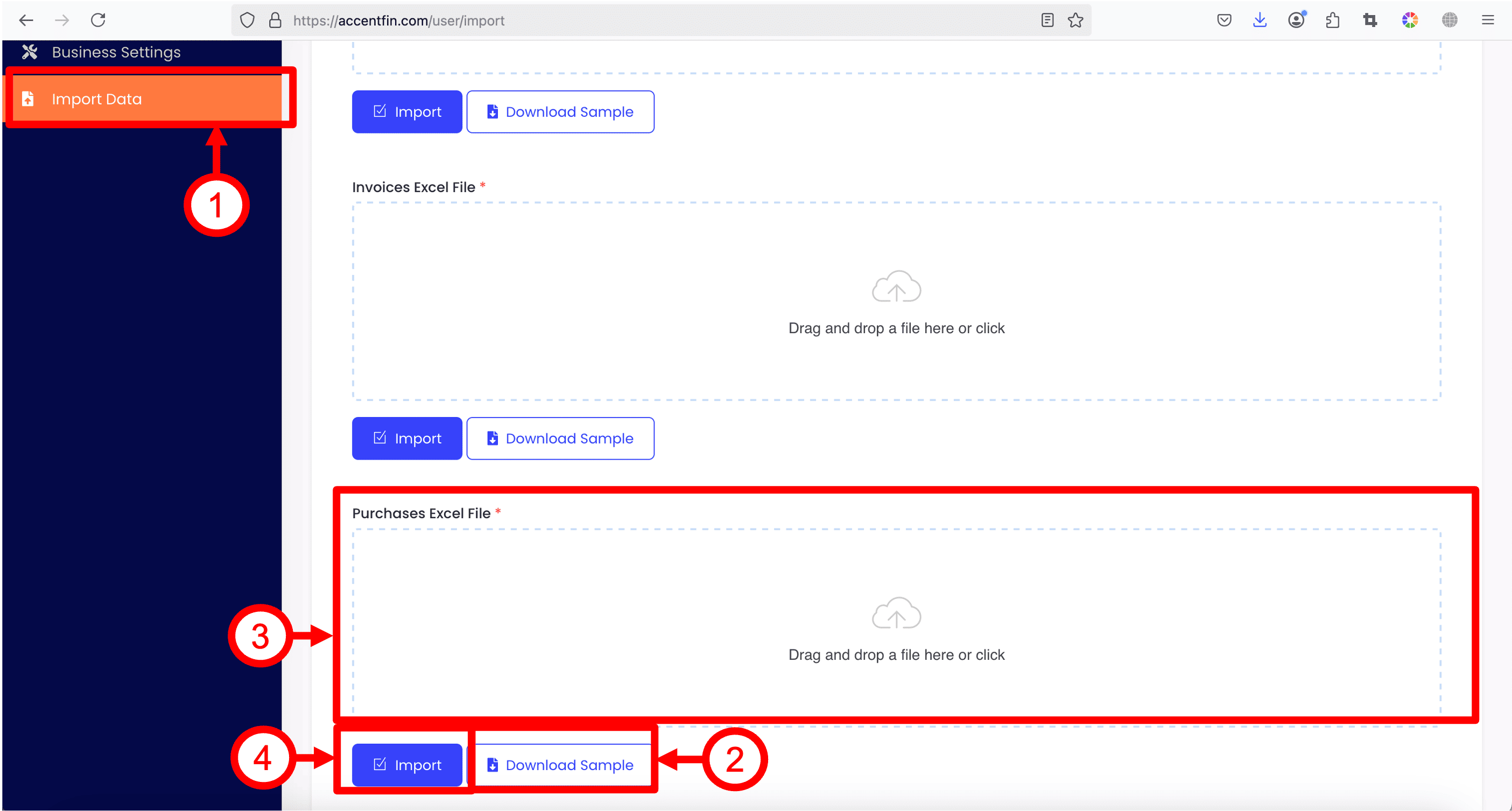2. Download the sample Excel file by clicking on the Download Sample button. The sample Excel file contains sample data for you to modify according to your needs.