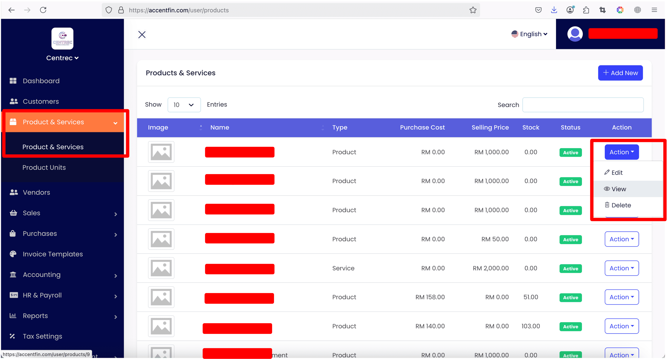 - Proceed to Products & Services > Products & Services located at the side menu.