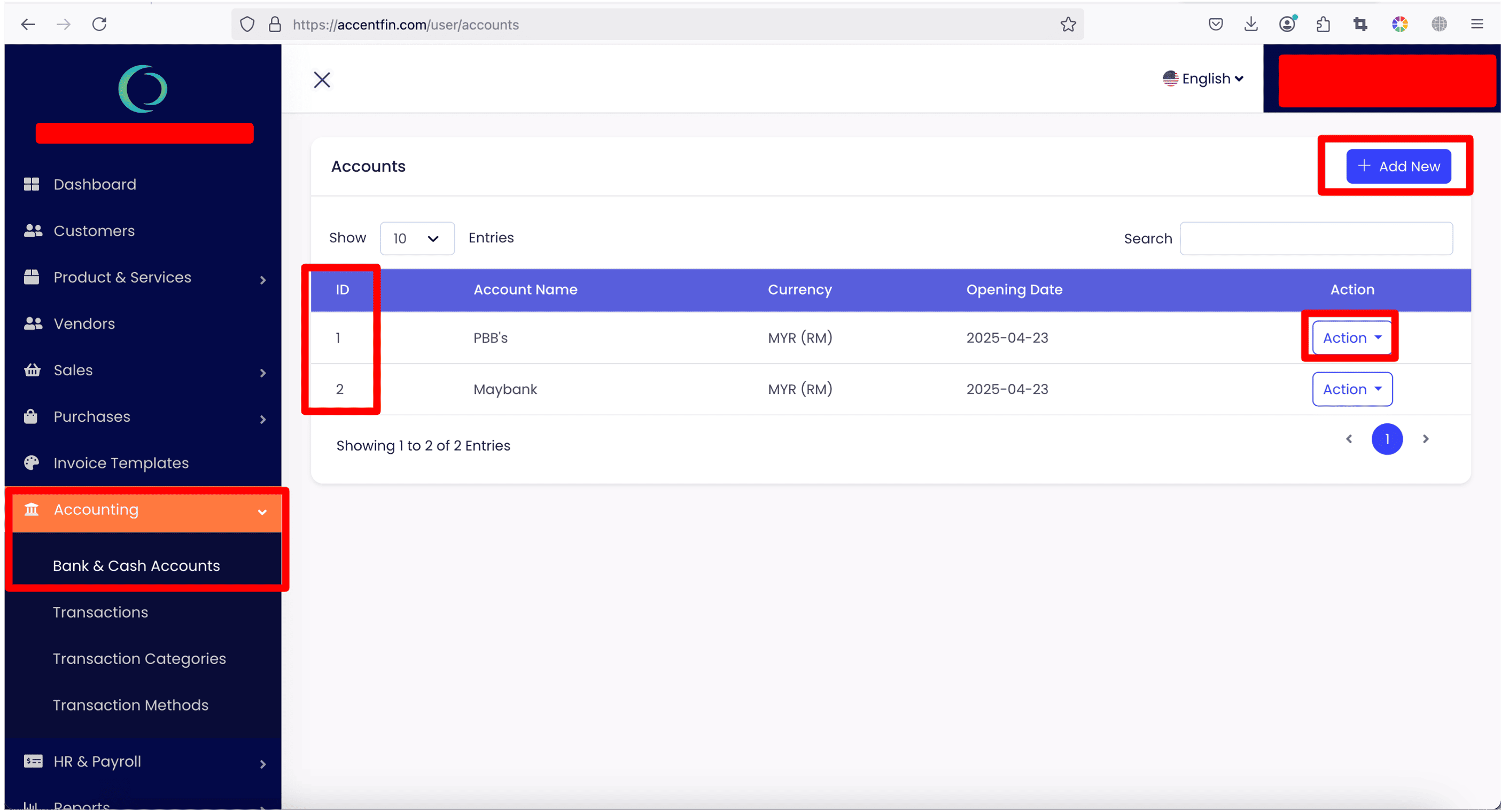 - Proceed to Accounting > Bank & Cash Accounts located at the side menu.