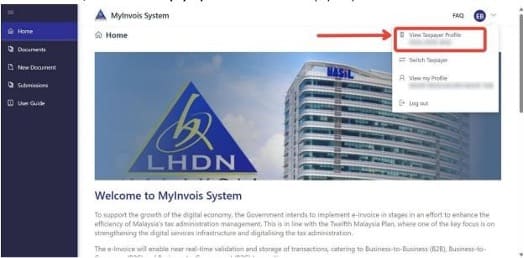 - On the top-right corner of the MyInvois Portal, locate the profile dropdown menu.