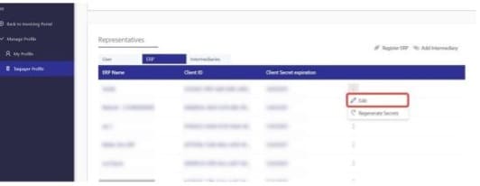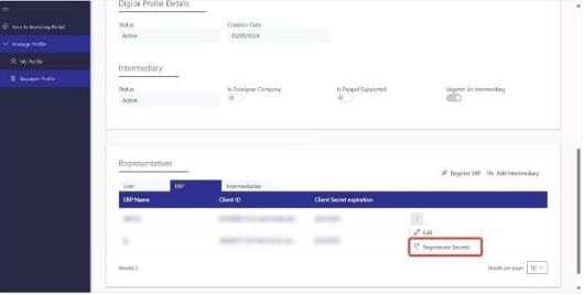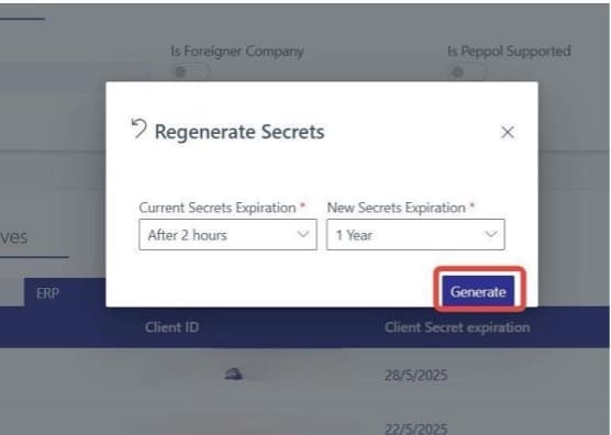 - On the ERP row, click “Regenerate Secrets".