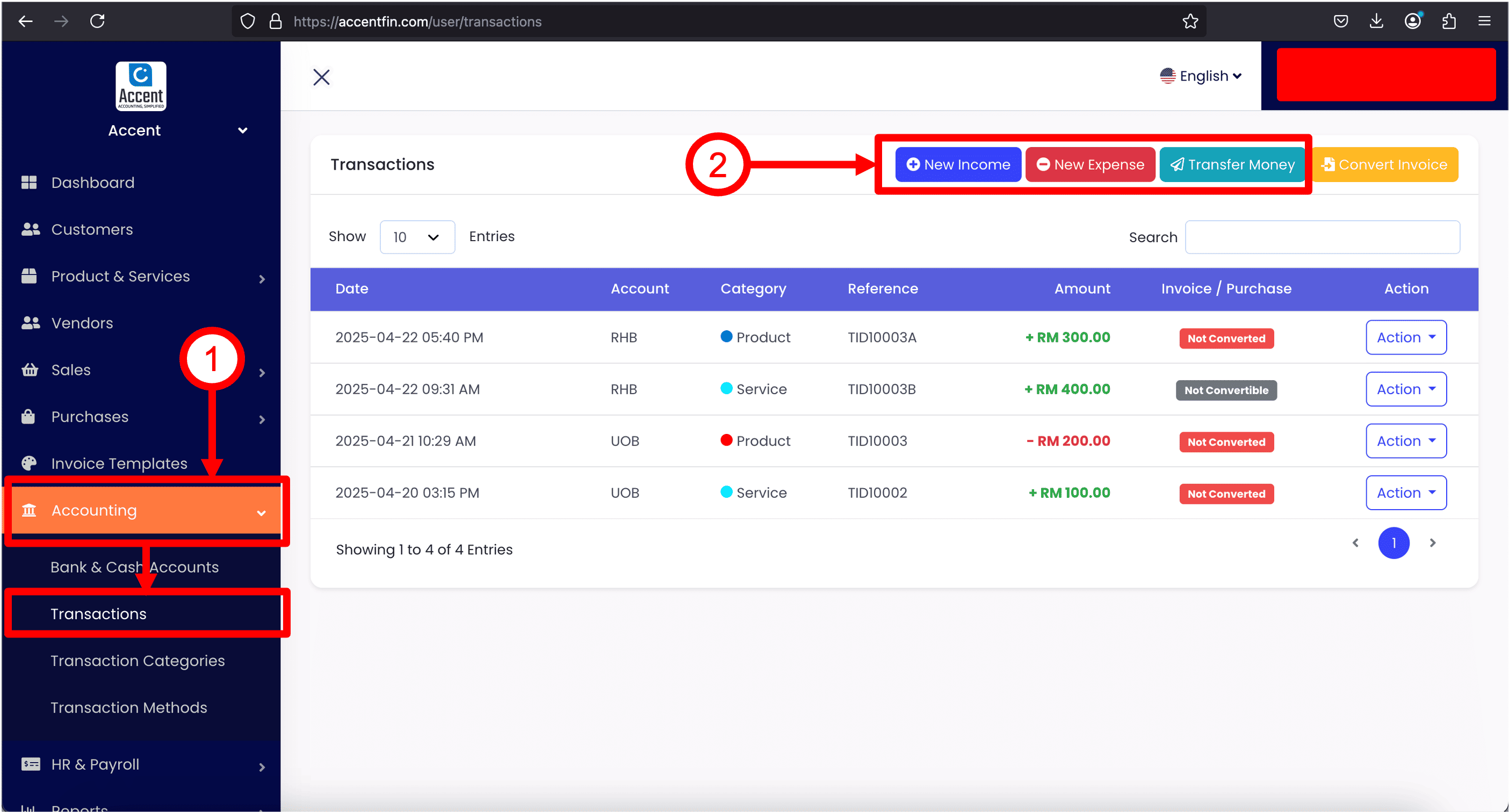 1. You may proceed to Accounting > Transactions located at the side menu.