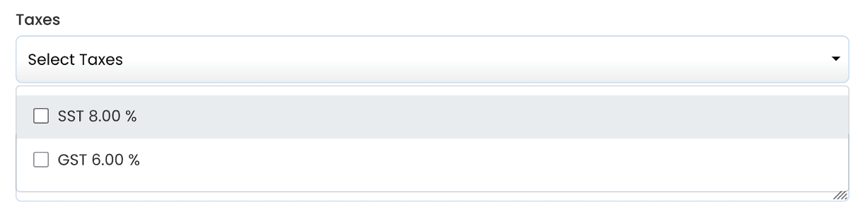 For every transaction record, you may apply one or more taxes onto it (optional, depending on your needs). To apply the tax, just check the checkbox of the selected tax. To learn how to create these tax options, please refer to this tutorial.