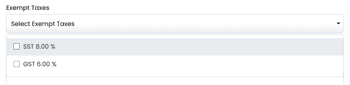 For every applied tax, you may also choose to exempt it (optional, depending on your needs) by checking the checkbox.