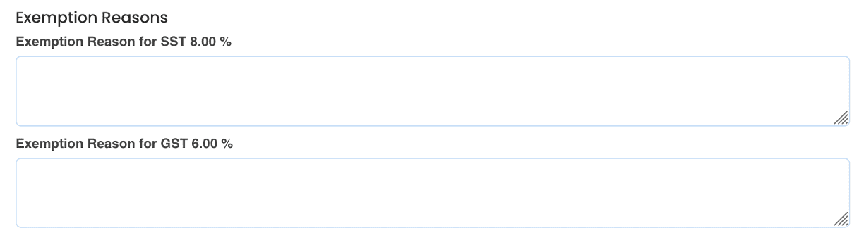 For every exempted tax, you are required to provide reasons on why the tax is being exempted (required by MyInvois Portal).