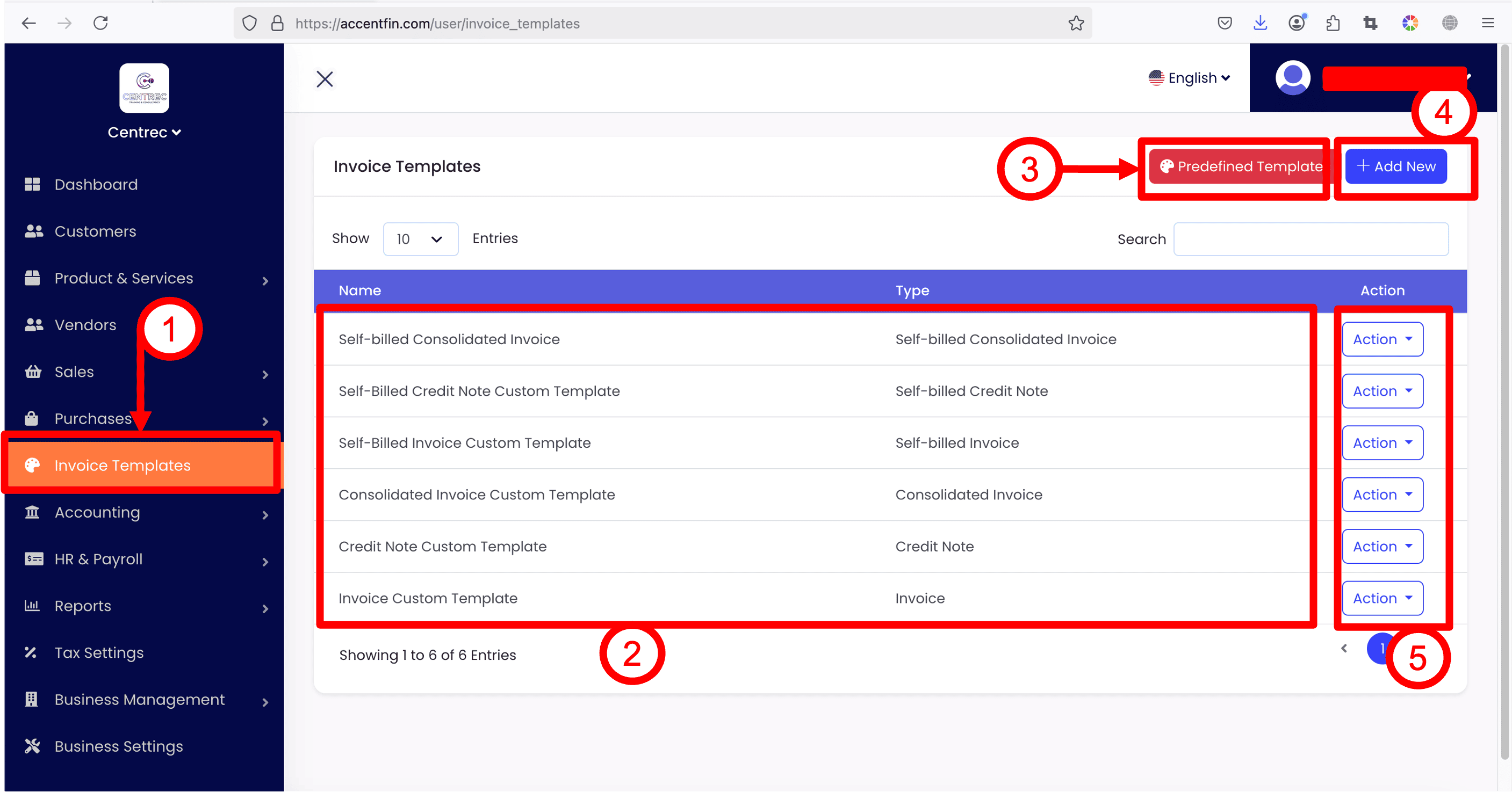 1. After you logged in to your account in Accent system, proceed to Invoice Templates at the side menu.
