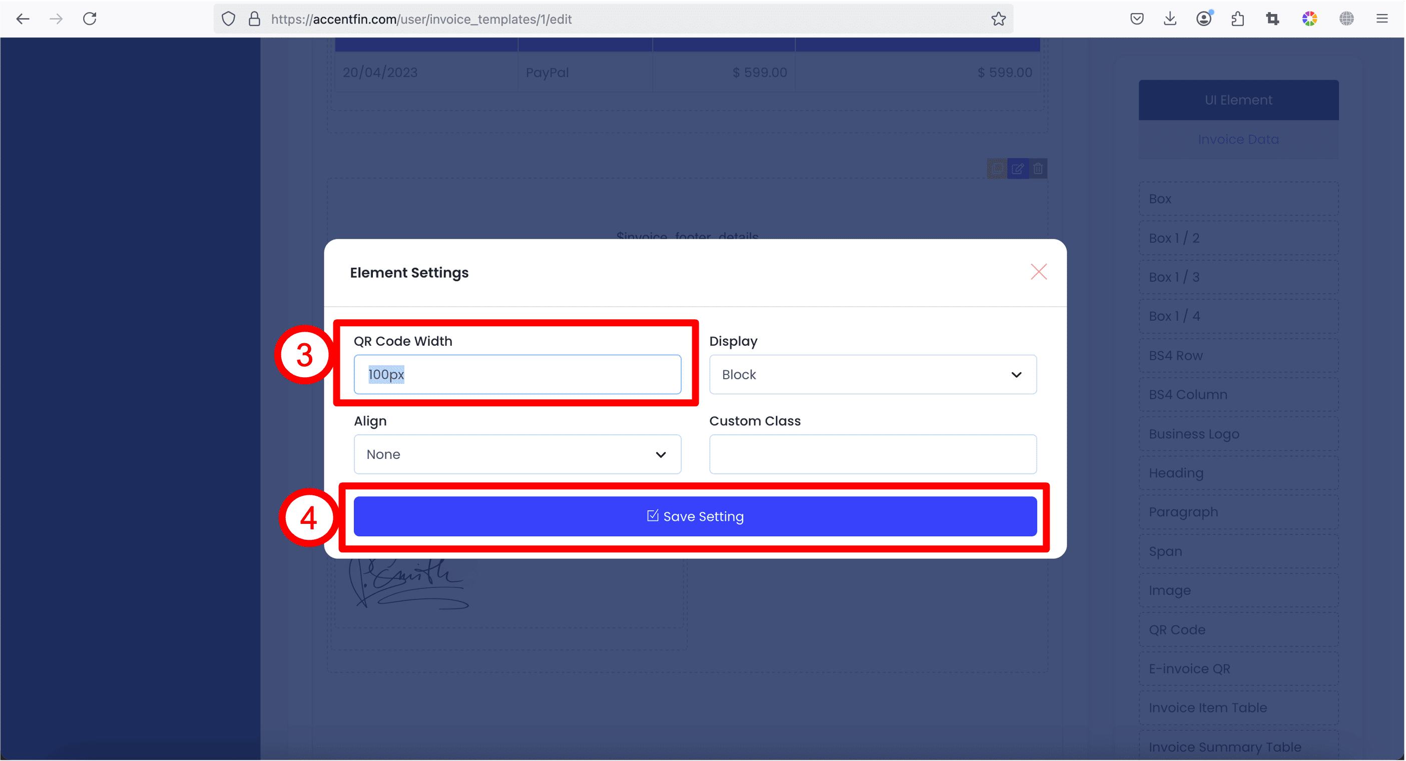 2. If you wish to make the e-Invoice QR bigger in your invoice, click on the blue color button to edit the element.