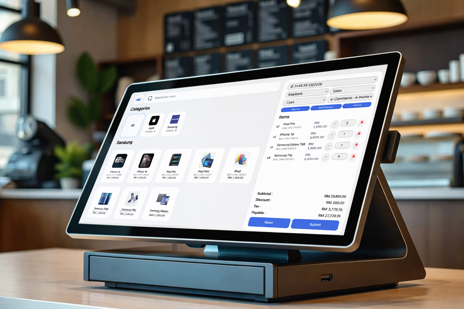 Create invoices with our LHDN e-Invoice ready system for seamless compliance.
