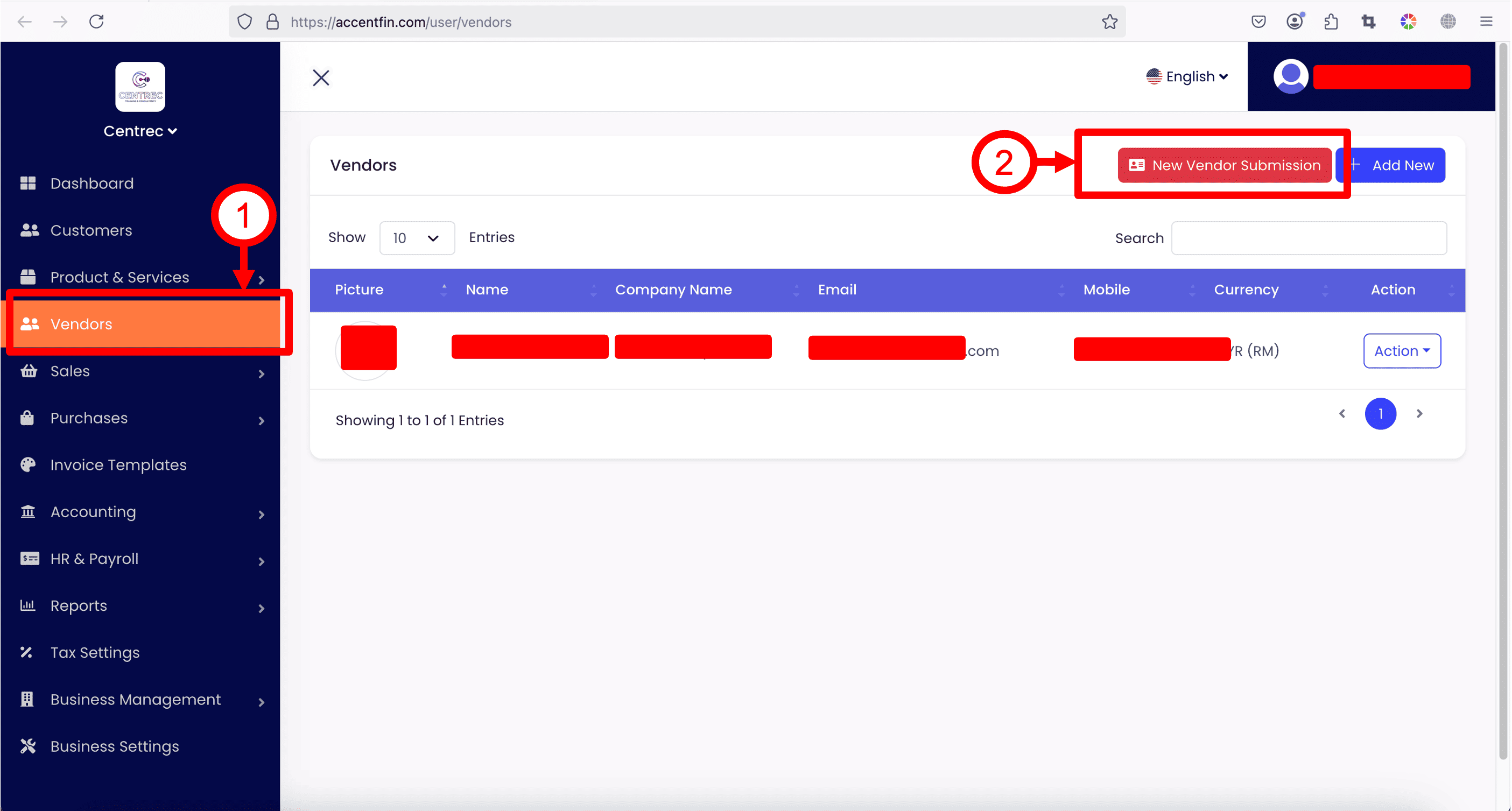 1. For Vendors, you may proceed to Vendors section located at the side menu.