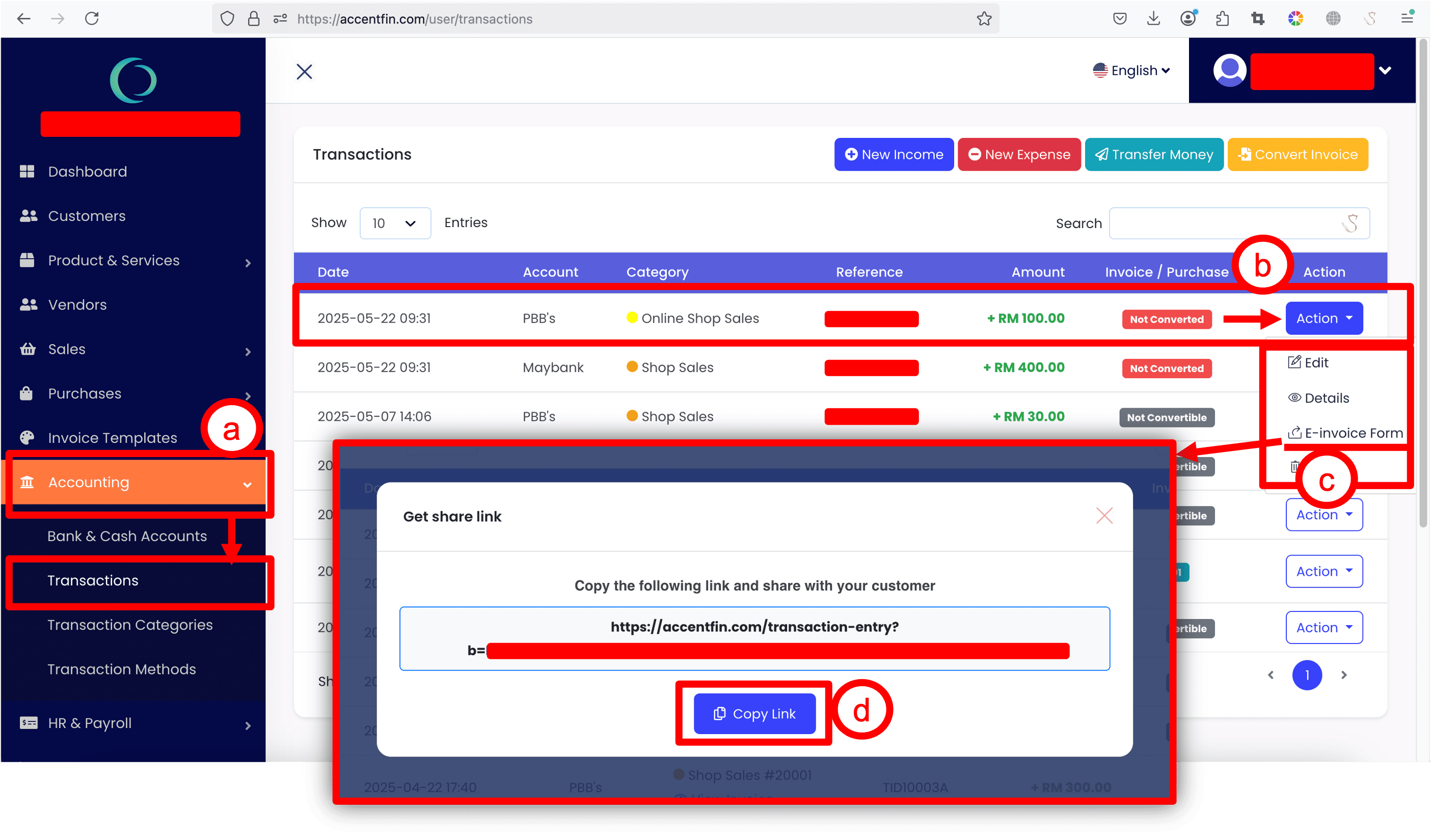 To allow your customers to request E-invoice for a specific transaction record, please refer to the end of this tutorial (Section "How to enable customers to request E-invoice for specific transaction?")